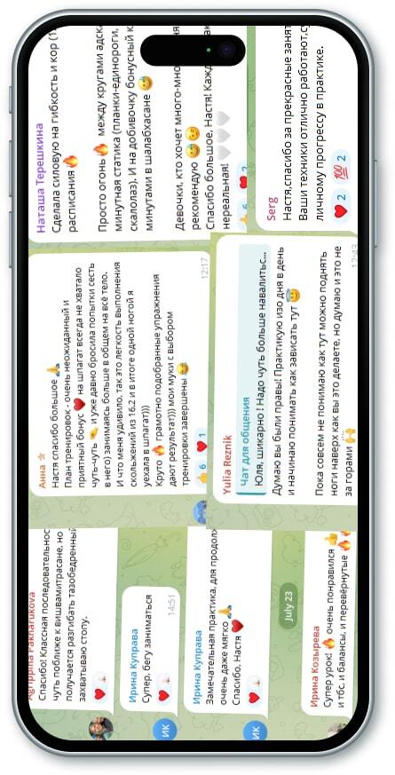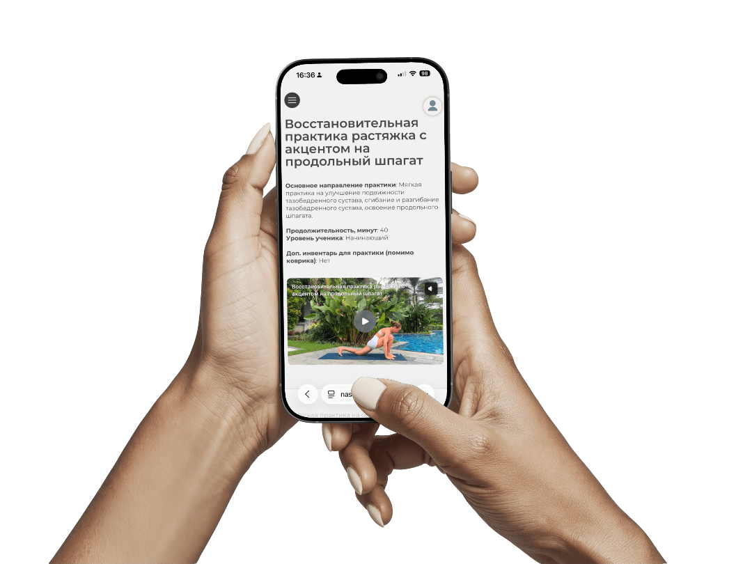 Сочетаю функциональные и круговые тренировки с весом, табата-комплексы и прогулки на природе. Такой подход помог мне прогрессировать в сложных асанах без боли и укрепить тело для повседневных задач.